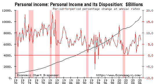 Only time will tell, but the economic indicators (see below), recent GDP trends, and history lean toward the bond market having the more accurate forecast (see previous update Housing & The Markets for some insight). If Q3 2006 GDP does come in at 2.0%, it would represent a 64% decline in economic growth vs. Q1's 5.6% reading. A 2.0% Q3 2006 GDP would mean a 52% decline in growth Y-O-Y vs. Q3 2005. The average GDP reading for the last six quarters is 3.48% or 1.74 times more (read better) than the expected 2.0% in Q3 2006. These figures show an economy that is at best slowing down significantly. These figures also tell us that the bond market may be right after all.